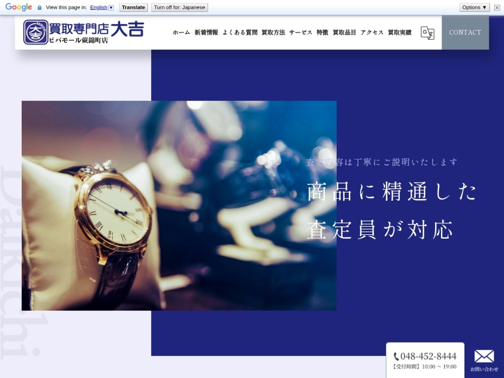 買取専門店大吉ビバモール蕨錦町店 ショッピングモール内で安心・専門鑑定士常駐 ダイヤモンド、色石、真珠など幅広く対応 店頭買取、出張買取に対応
